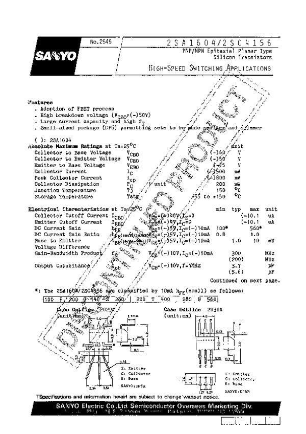 -> Просмотр технического описания на 2SA1604