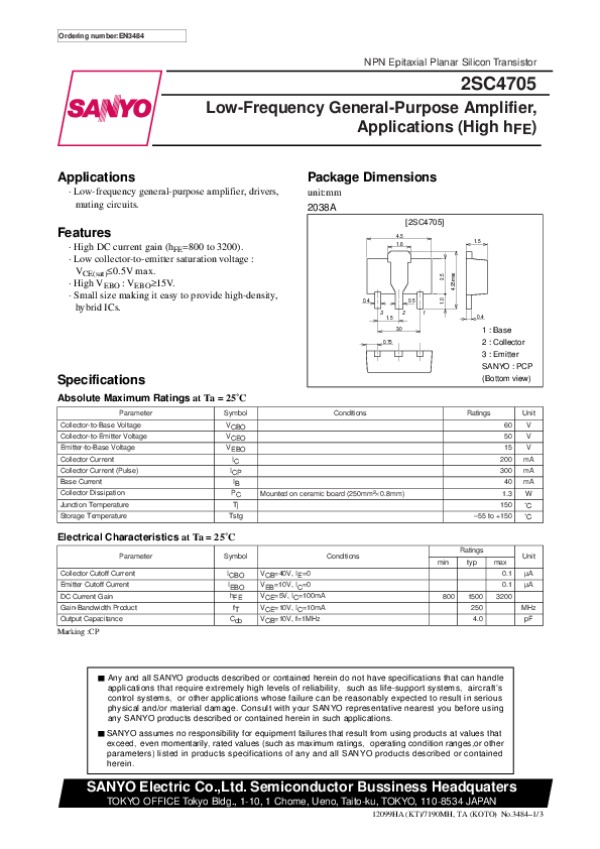 Datasheet 2SC4705: