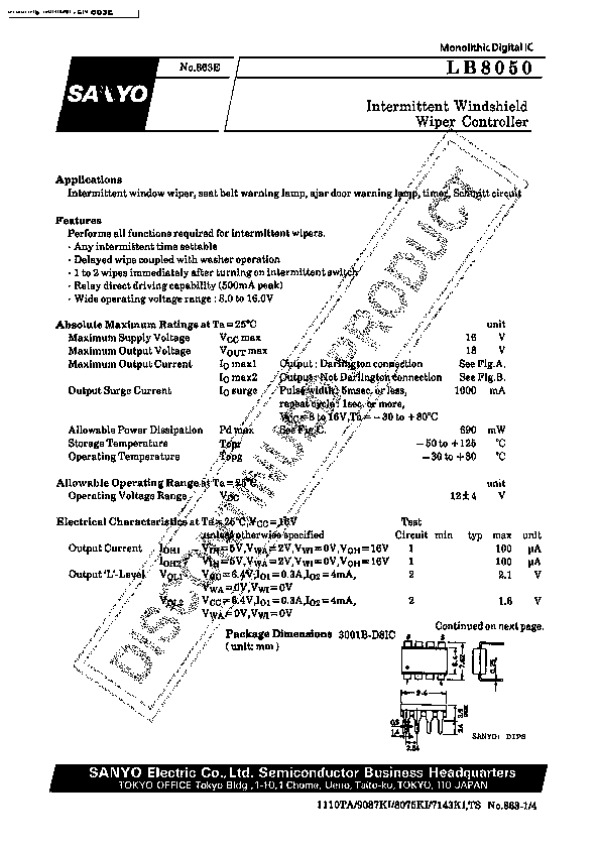 Datasheet LB8050: