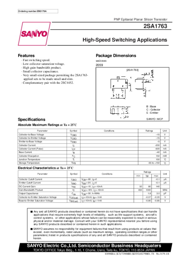 Datasheet 2SA1763: