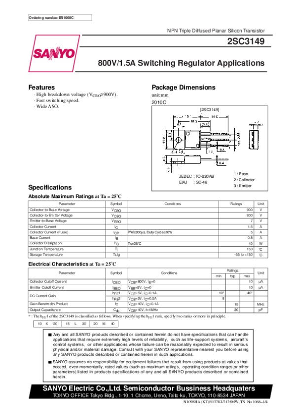 Просмотр технического описания на 2SC3149