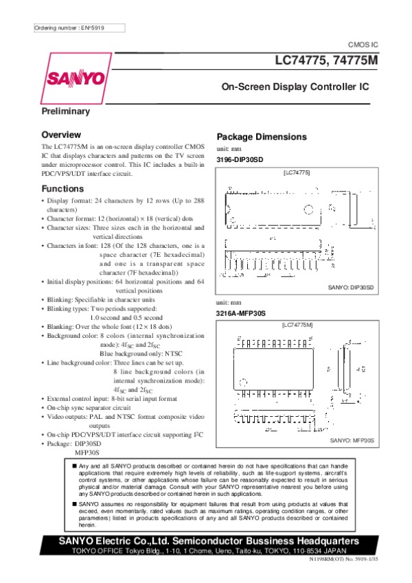 Просмотр технического описания на LC74775M