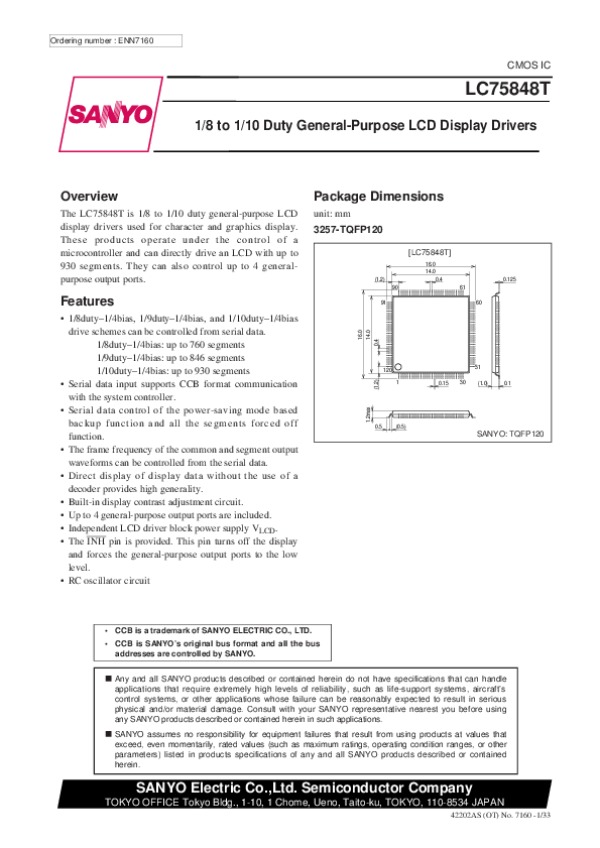 Datasheet LC75848T: