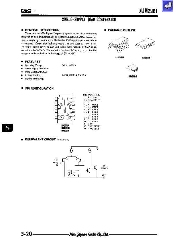 Просмотр технического описания на NJM2901