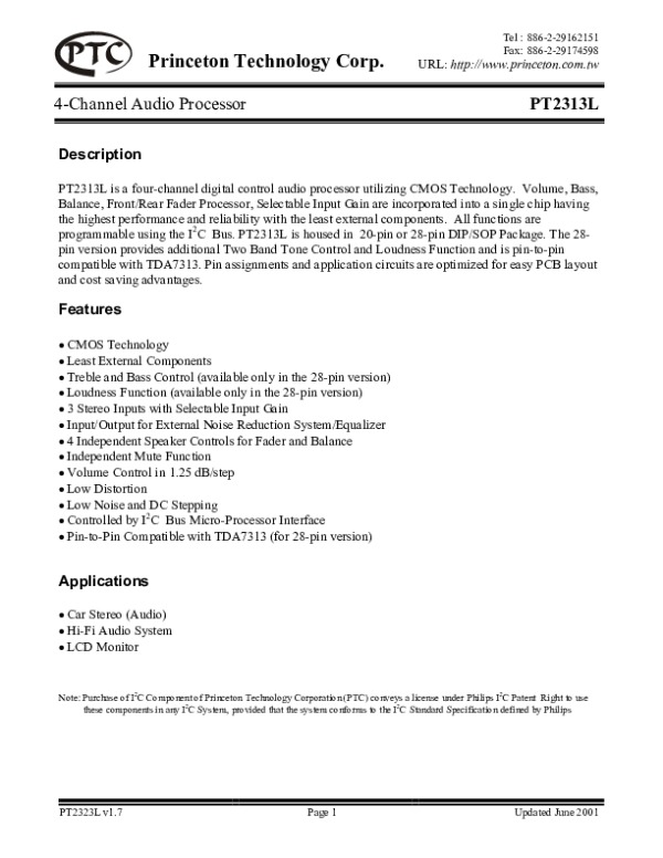 Просмотр технического описания на PT2313LS
