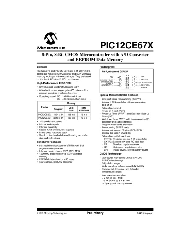 Datasheet 12CE673: