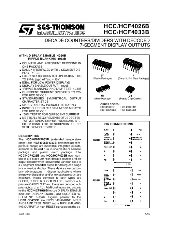 Datasheet HCC4033B: