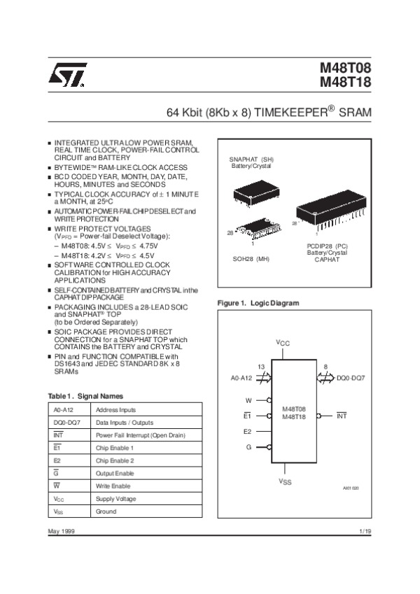 Datasheet M48T18:
