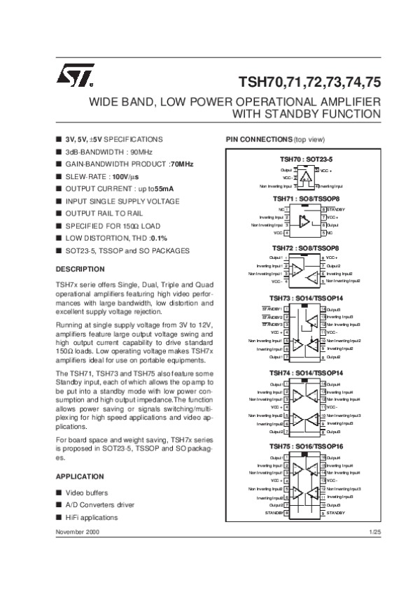Datasheet TSH70,71,72,73,74,75: