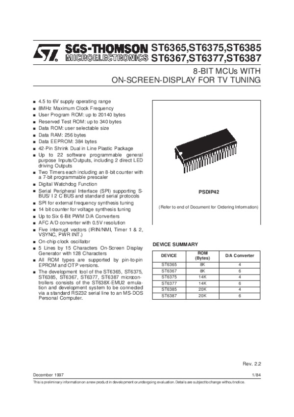 Просмотр технического описания на ST6365