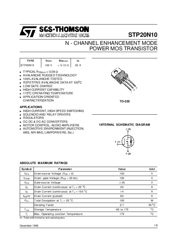 Datasheet STP20N10: