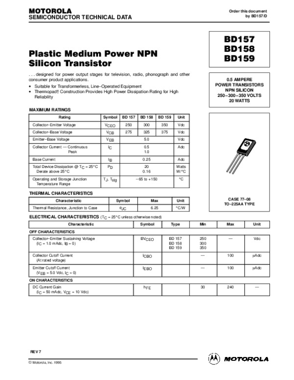 Datasheet BD157REV: