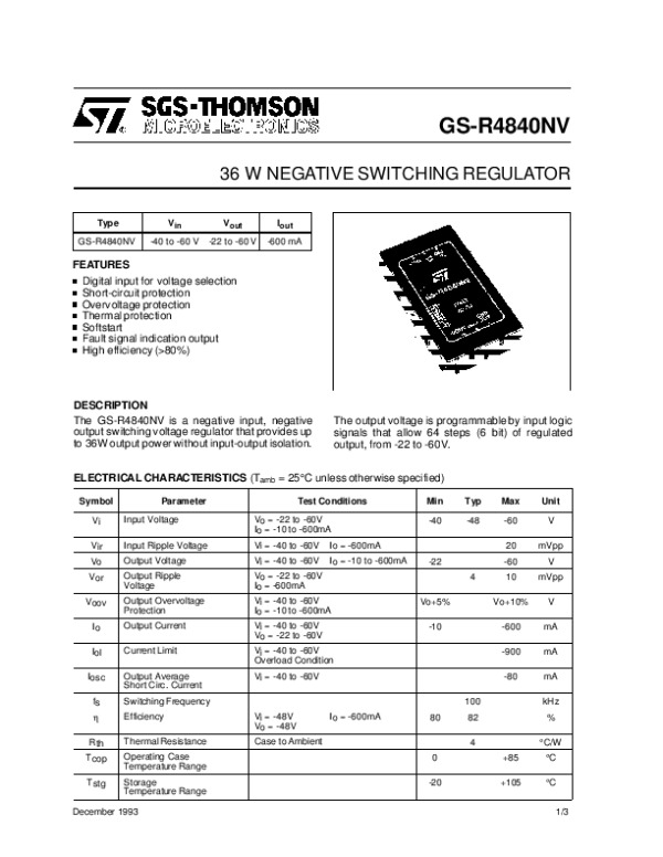 Datasheet GSR4840NV: