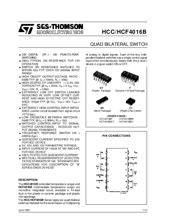 Просмотр технического описания на HCC4016B