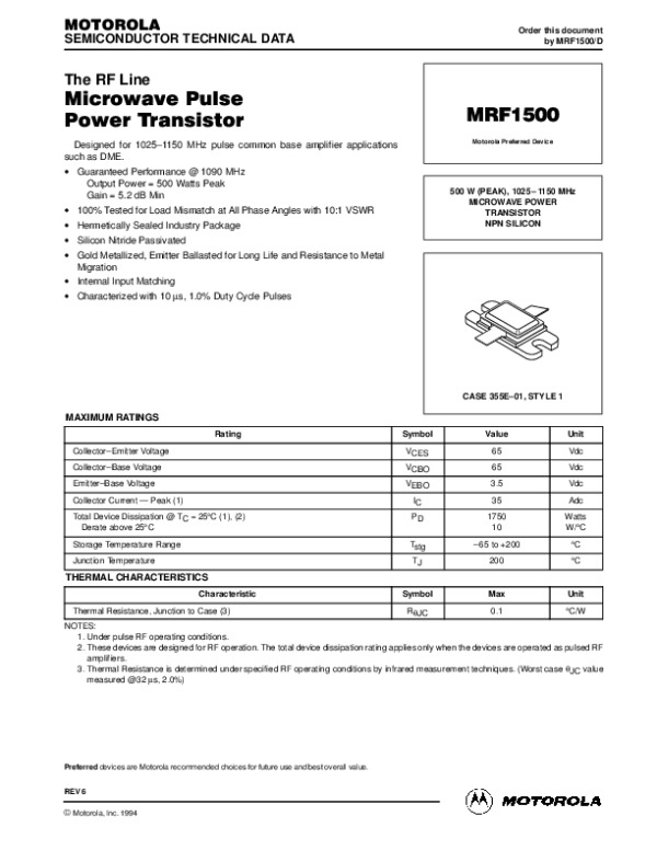 Datasheet MRF1500REV6: