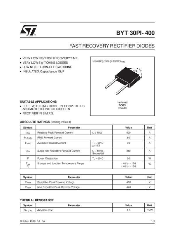 Datasheet BYT30PI400: