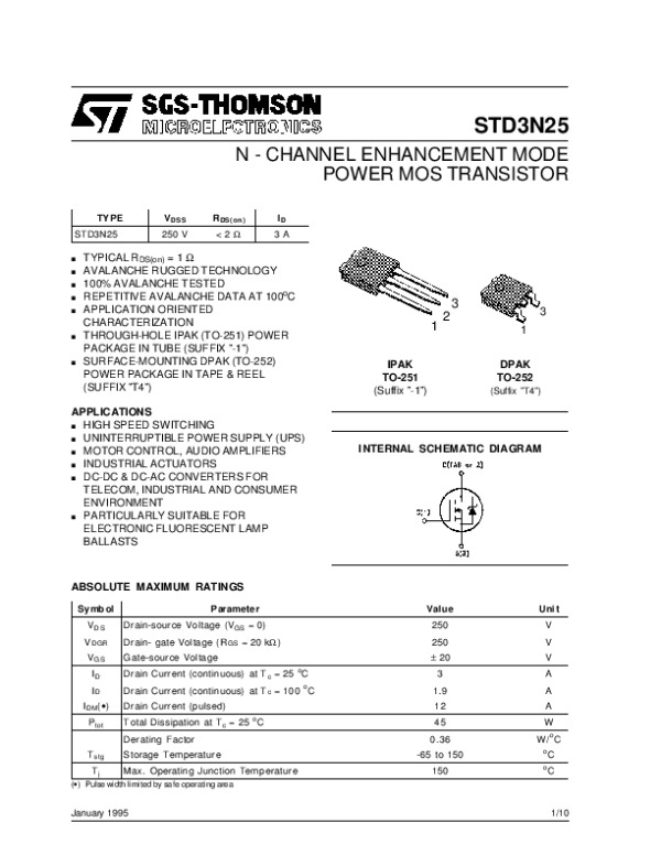 Просмотр технического описания на STD3N25