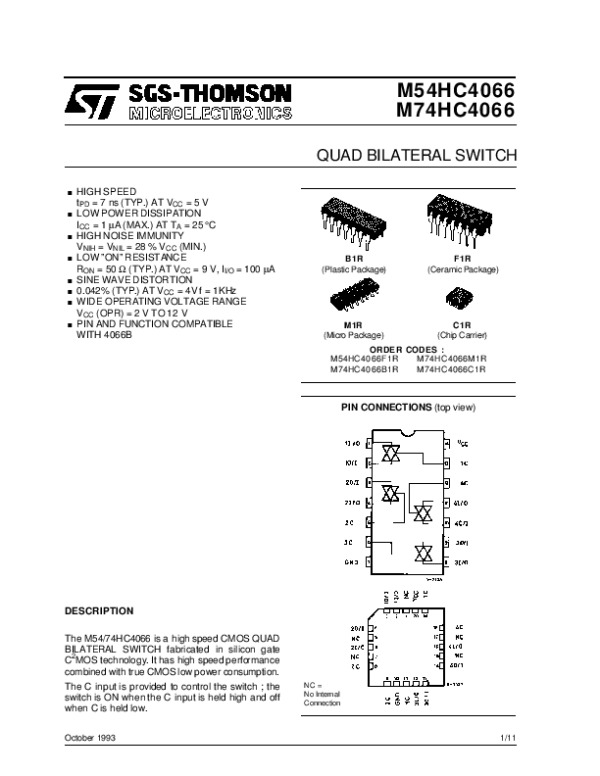 Datasheet M54HC4066M74HC4066: