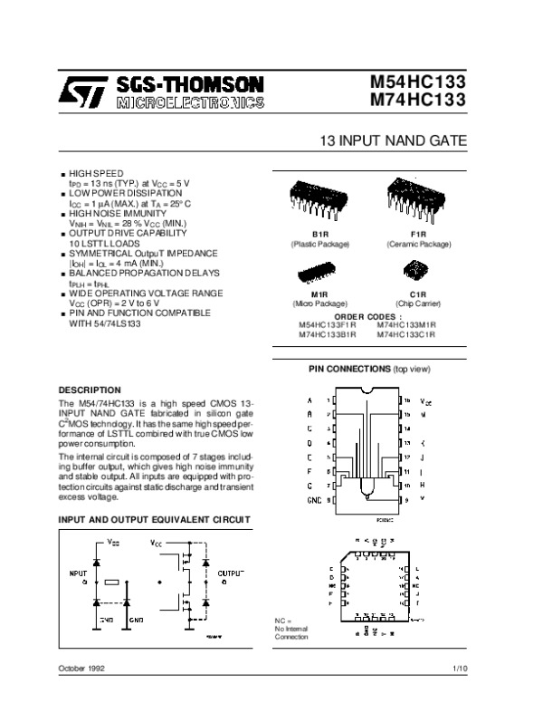 Datasheet M54HC133M74HC133: