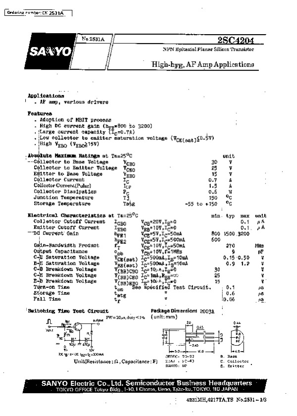 Просмотр технического описания на 2SC4204