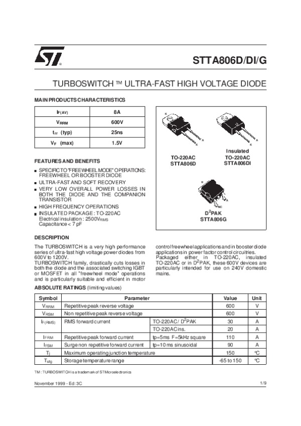 Просмотр технического описания на STTA806D