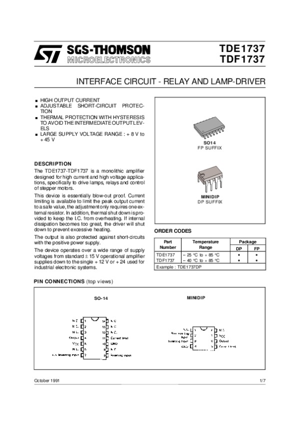 Datasheet TDE1737TDF1737: