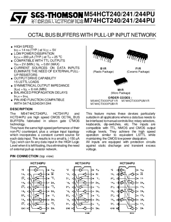 Datasheet M54HCT240PUM74HCT240PU: