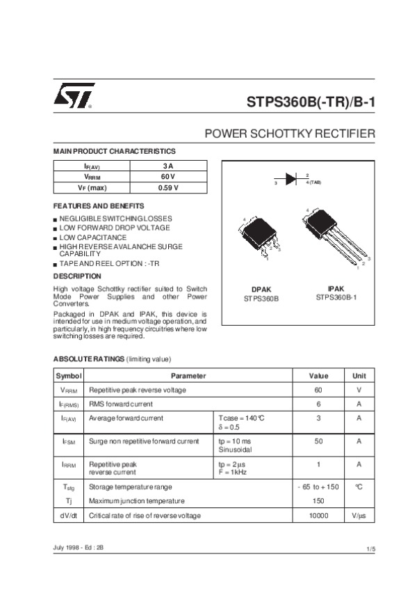 Datasheet STPS360B: