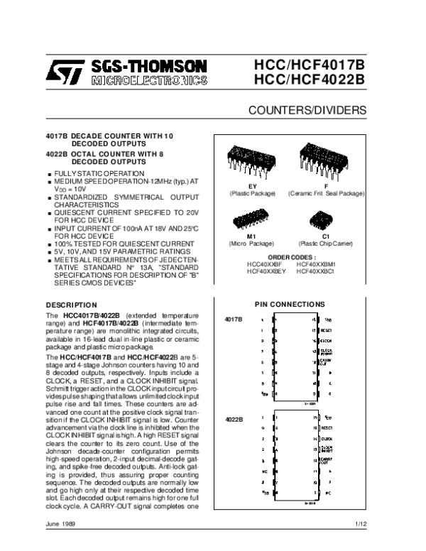 Datasheet HCC4017B: