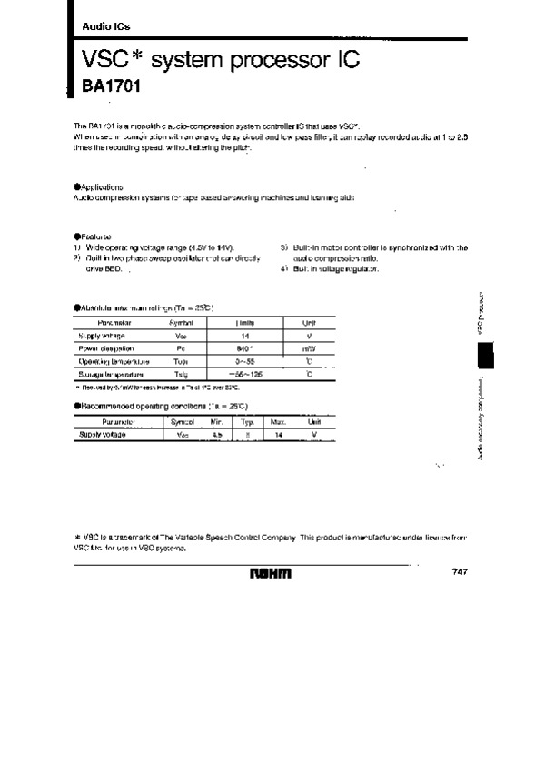 Datasheet BA1701: