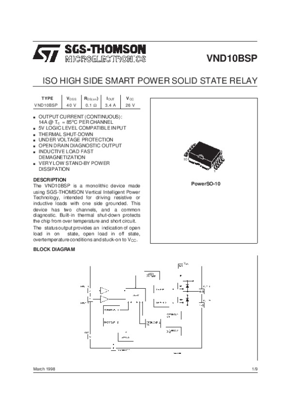 Просмотр технического описания на VND10BSP