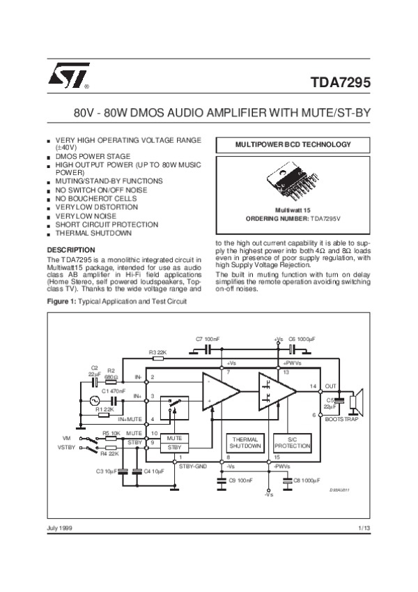 Datasheet TDA7295: