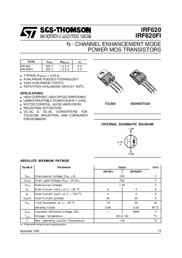 Datasheet IRF620: