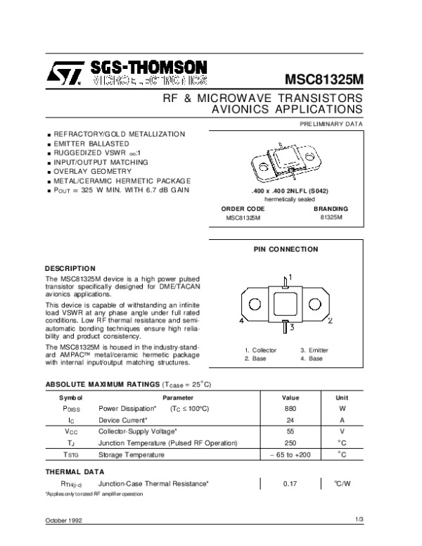Datasheet MSC81325M: