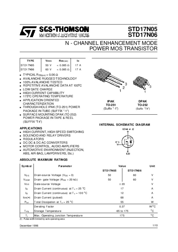 Datasheet STD17N05: