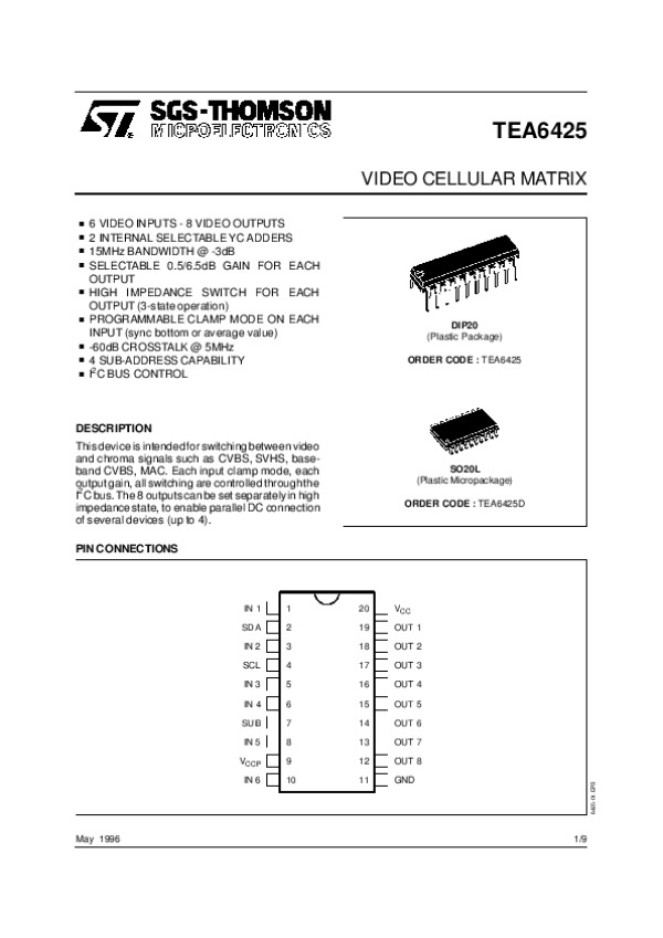 Datasheet TEA6425: