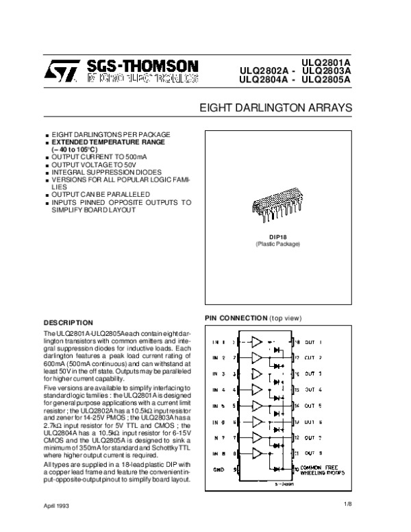 Datasheet ULQ2804A ULQ2805A:
