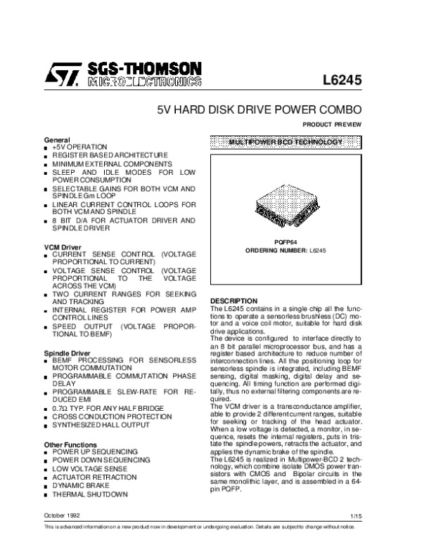 Просмотр технического описания на L6245