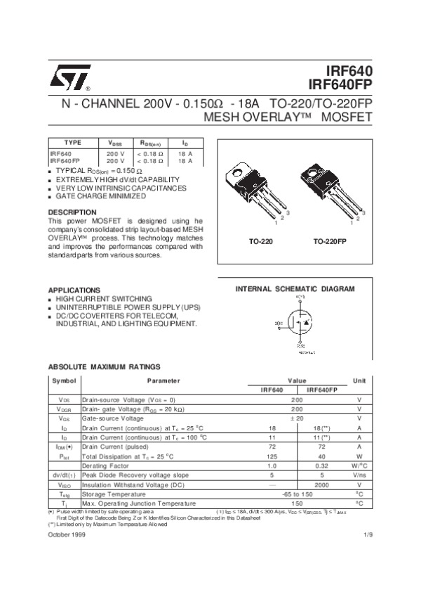 Datasheet IRF640: