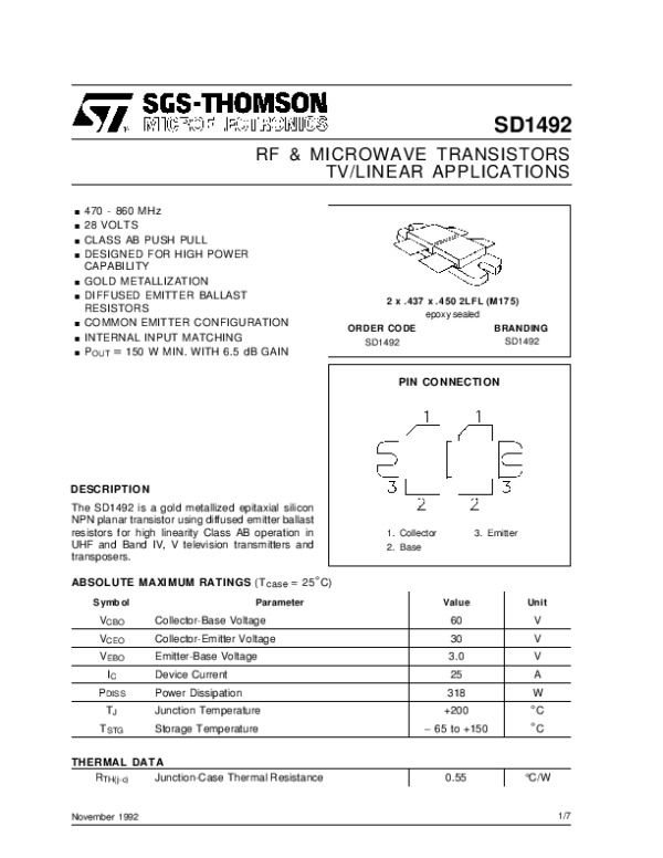 Datasheet SD1492: