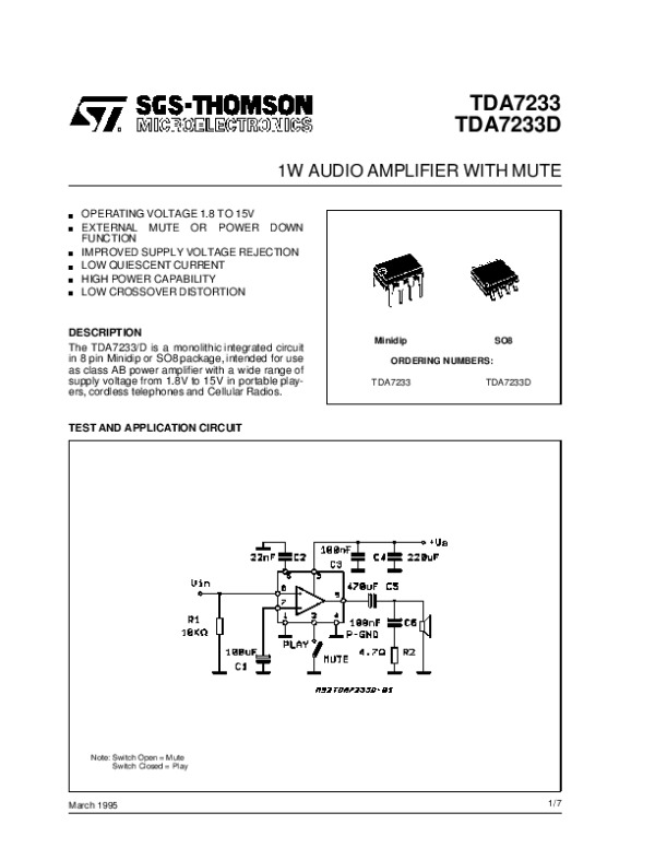Просмотр технического описания на TDA7233