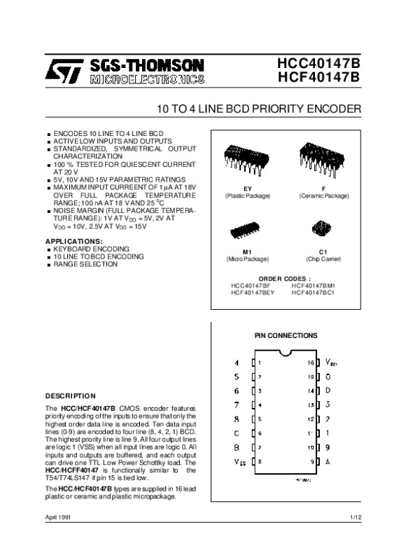 Просмотр технического описания на HCF40147B