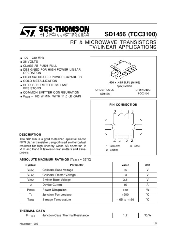 Datasheet SD1456: