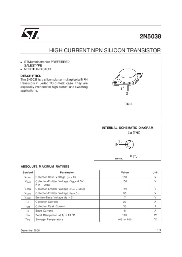 Datasheet 2N5038: