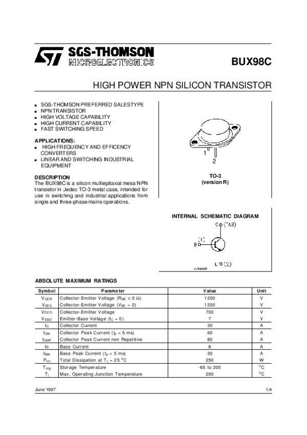 Datasheet BUX98C: