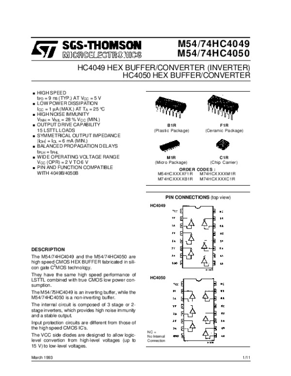 Datasheet M54HC4050M74HC4050: