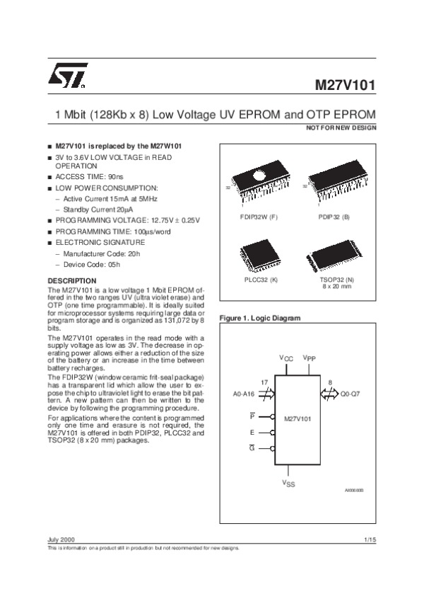 Datasheet M27V101:
