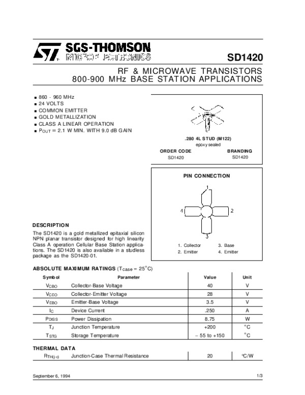 Datasheet SD1420: