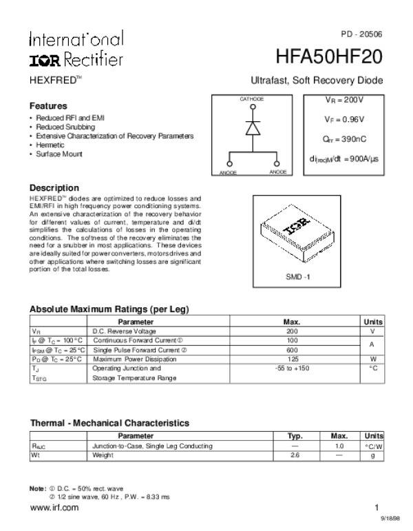 Datasheet HFA50F20: