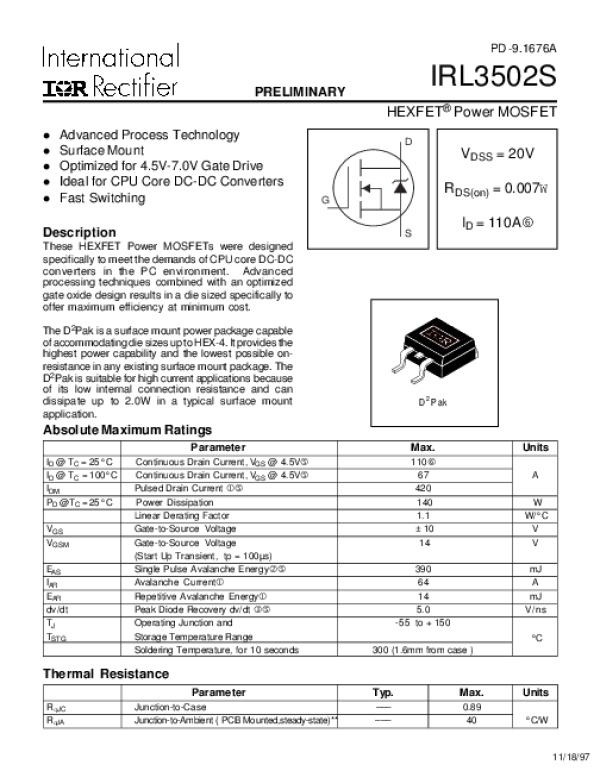 Datasheet IRL3502S: